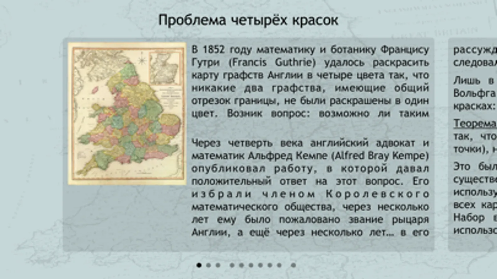 Можно ли карту России раскрасить в четыре цвета так, чтобы никакие два соседних региона не были покрашены в один цвет? Оказывается, так можно раскрасить любую карту — это утверждение стало первым компьютерным доказательством в науке. Вы можете проверить это на карте России, подучить немного географию нашей страны, а также побывать в стране Мартина Гарднера.