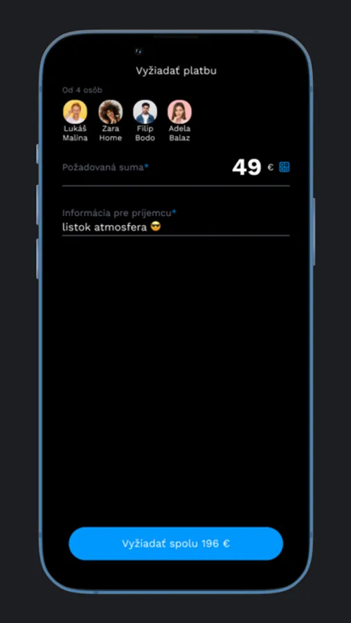 Function payment request allows you to remind another person payment you expect. If the receiver has Viamo application he/her can react and pay directly in VIAMO app. If receiver does not have the application, you can send payment request as an SMS message with Payme link.