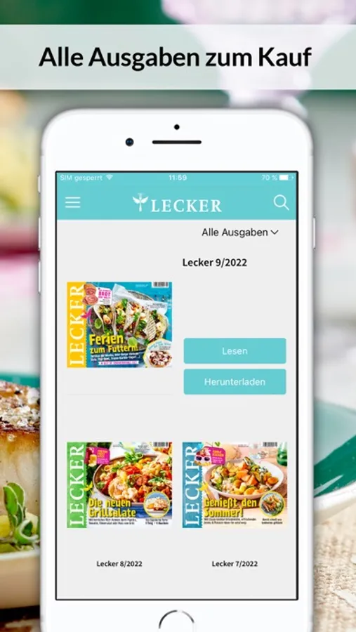 In der App können Sie die digitalen Ausgaben des Heftes herunterladen, abonnieren und lesen. Zusätzlich präsentieren wir Ihnen täglich ein kostenfreies Rezept, das Sie speichern und zu Ihren Lieblingsrezepten hinzufügen können.