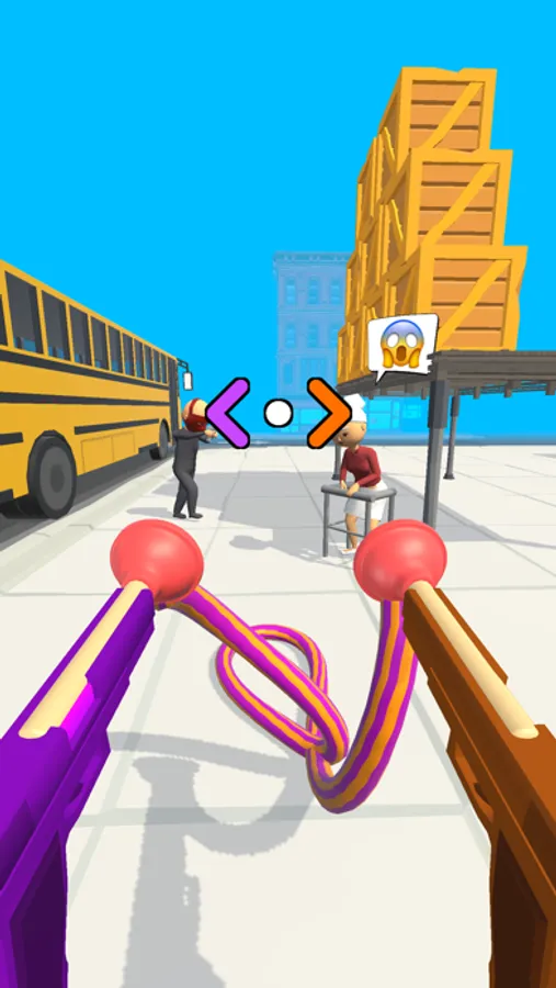 Use your plungers in creative ways to take down the bad guys. Shoot one side at one object, the other at a moving object and watch as they pull each other.