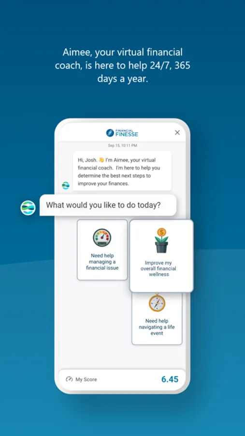 • Work with Aimee™, your virtual financial coach, to advance toward your goals.