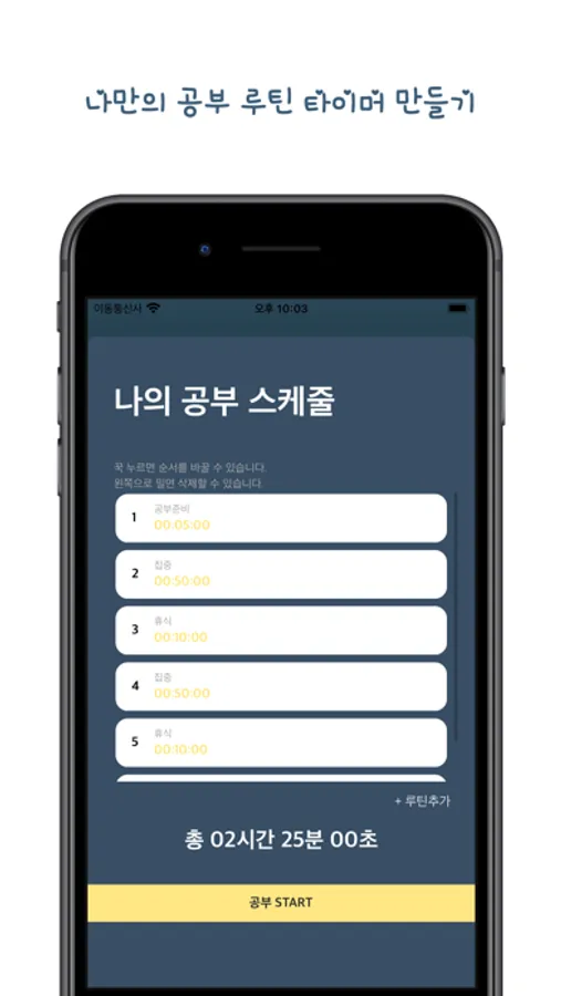 준비, 공부, 휴식을 나만의 루틴을 설정해서 타이머를 만드세요.