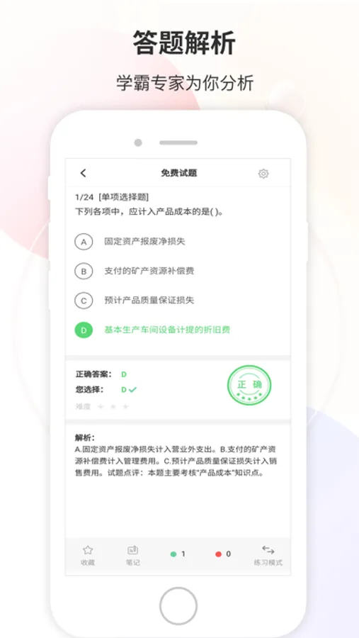 ●答题解析,试题讨论,答错答对有专家帮忙解释,深入掌握试题,还有百万考生精彩评论