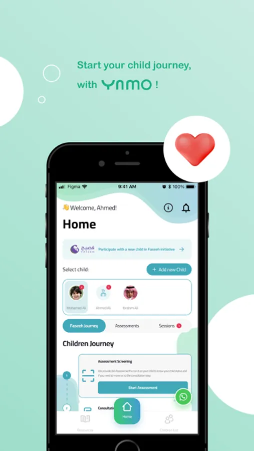 Ynmo provides the family with an integrated system that helps them understand the stages of development of their children, and facilitates communication with specialists to monitor their children’s growth.