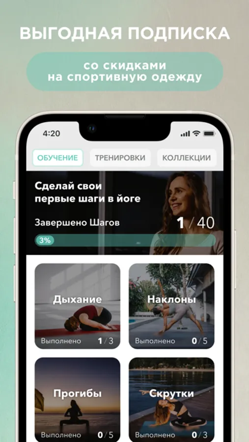 Отдельный раздел Йога для начинающих, состоящий из 40 шагов