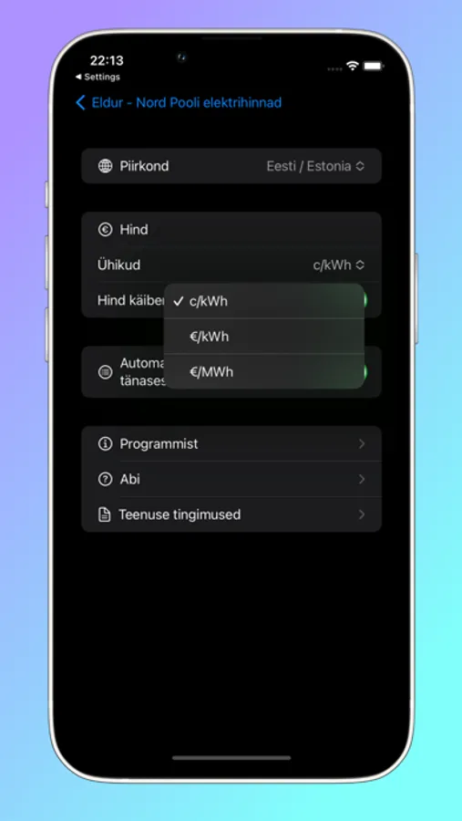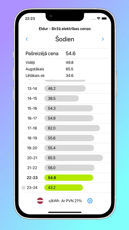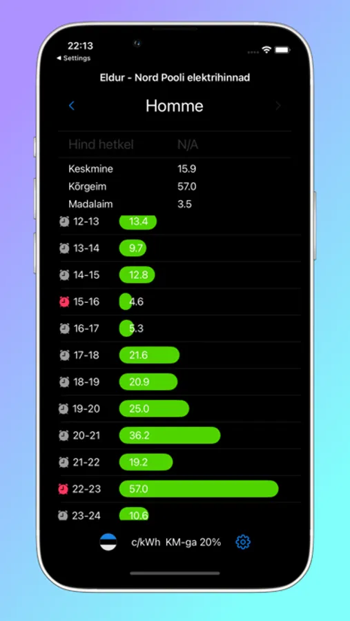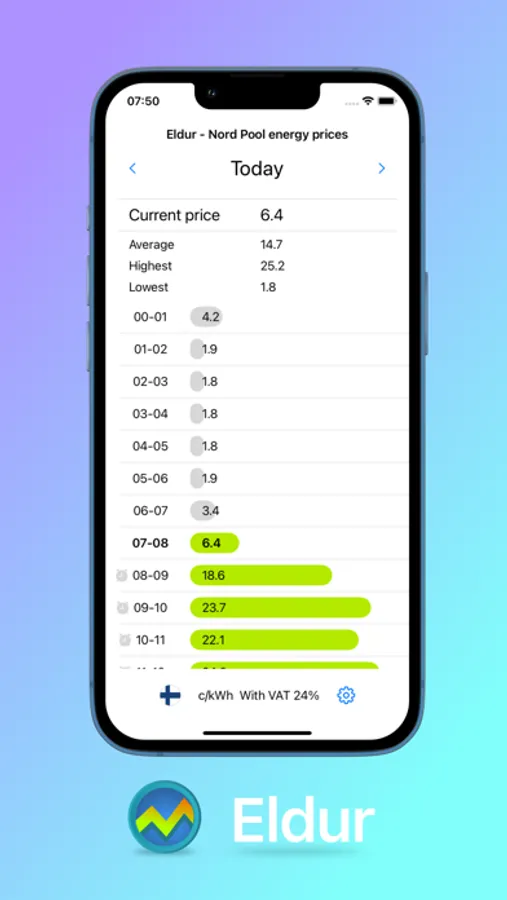 Prices shown in the app are market prices, which means that these are only one part of final price on your electricity bill. Additional costs depend on the contract between you and your energy provider and it’s impossible to calculate them in this app. However, shown prices will give you a clear picture in which hour consuming the electricity is most affordable and when does it make sense to limit it.