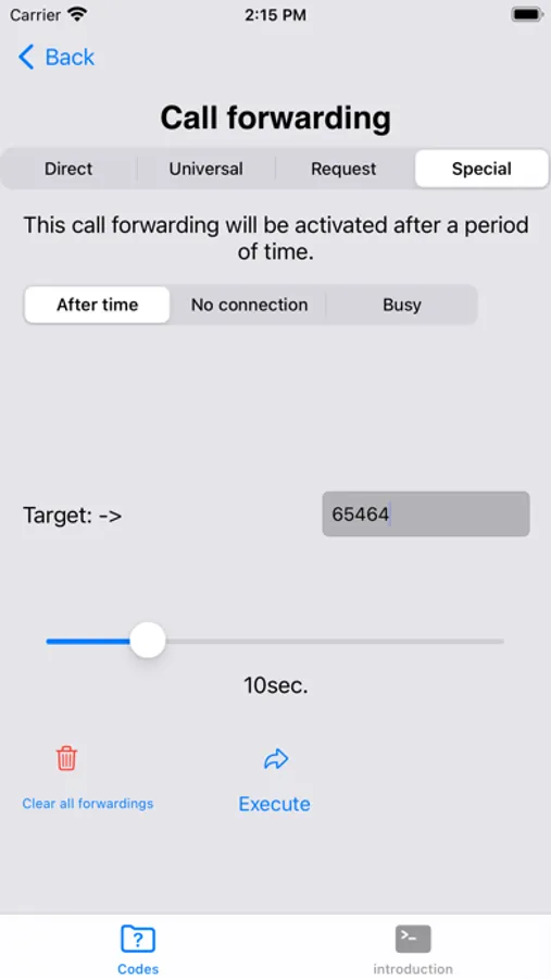 With this app, call forwarding can be conveniently set. For example, you can choose how long it should ring, or what happens when you have no network, etc...