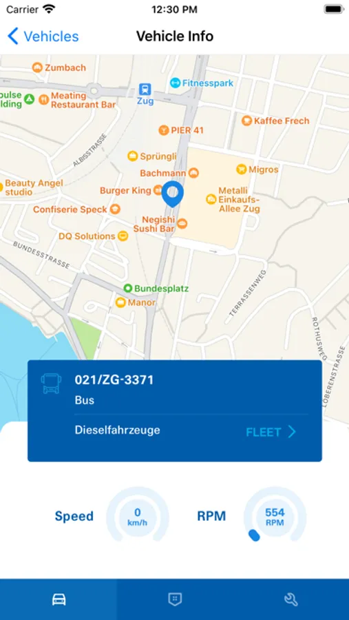 ZF Bus Connect Mobile will add value to any fleet manager: It provides live insight on the assets locations on the map, tell-tale, fuel or battery charge status and more.