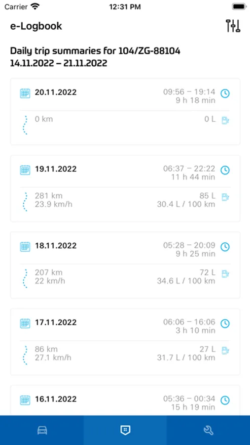Our E-Logbook provides route statistics, history of all individual routes, daily summaries, resting/parking times and more