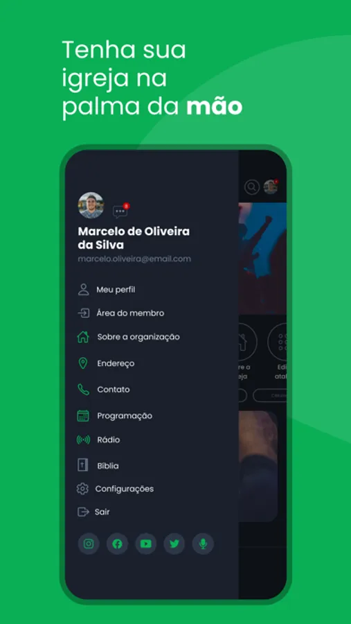 Recursos disponíveis no Aplicativo: Notícias, Agenda da igreja, Eventos,