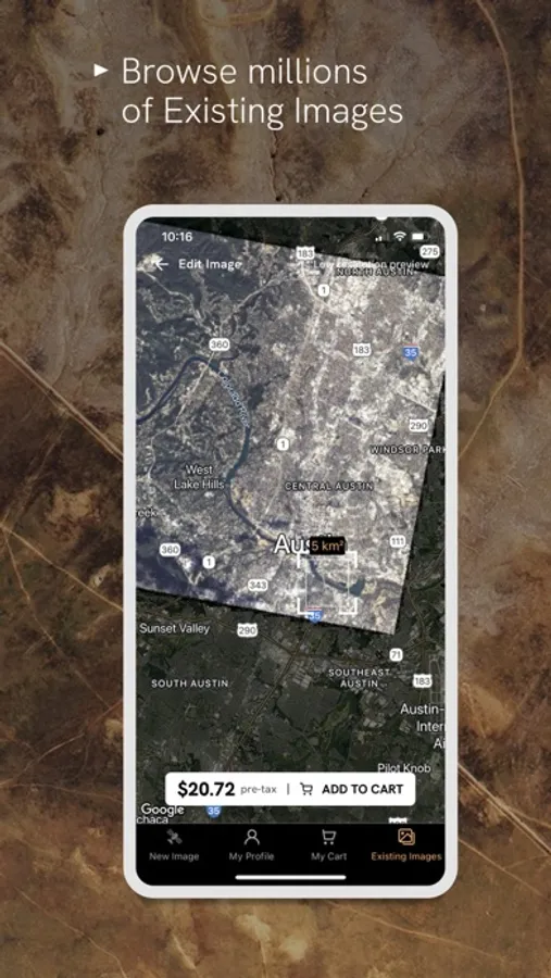 Gain a unique perspective on any location in the world from our ever-expanding network of satellite providers. With SkyFi, you’re only a tap away from purchasing new or existing imagery.