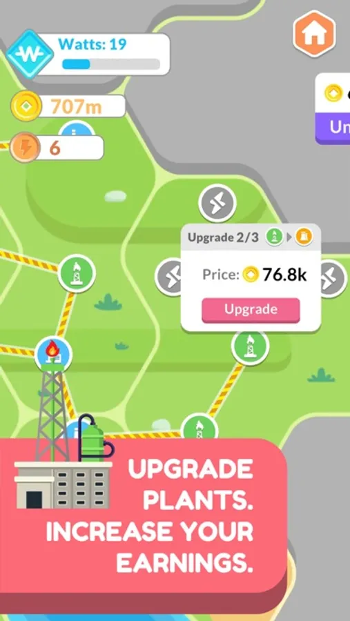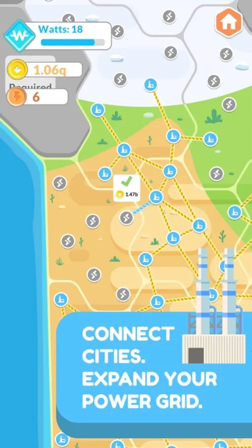 In Electric city lines, you'll have to manage your coins wisely; make sure you have enough Watts to expand and keep an eye on those Sparks; they'll make or break your campaign. And don't forget to upgrade your power plants! You won't go far only with Coal Plants. Once you can afford it, upgrade them to Gas Plants or even take advantage of the energy powerhouse that Nuclear can offer you.