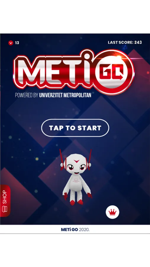 METi GO is a video game designed and revived by a team of Belgrade Metropolitan University students from the Faculty of Information Technology, a study program in Game development, with the cooperation of colleagues from the Faculty of Digital Arts. METi is a futuristic character, always up to date with the latest trends, who symbolizes innovation and creativity, as well as the desire to gain the necessary knowledge through the game - that is, to collect the necessary points.