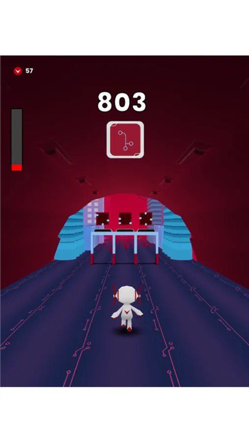 The player controls METi by moving him left and right as he moves forward through space. In that way, the player should avoid obstacles and enemies, while collecting points at the same time. During his journey, METi will come across three gates within which he has to solve a given puzzle - throughout the game these puzzles lead to additional excitement and tension, because everything happens very quickly.