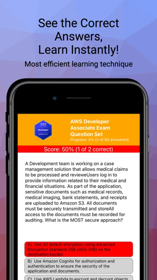 The correct answers are shown instantly for each question, so you learn straight from your mistakes.