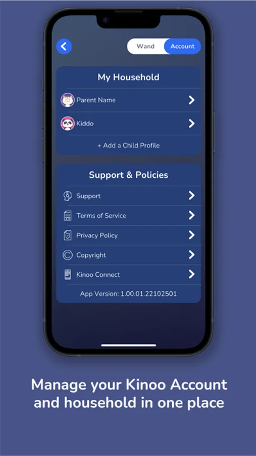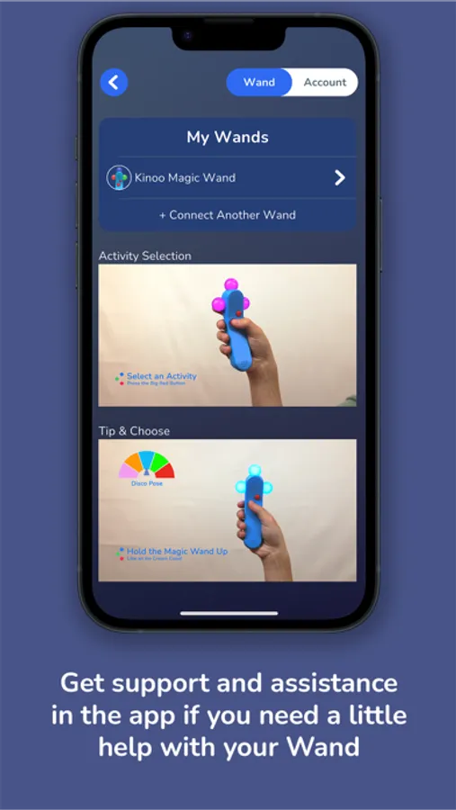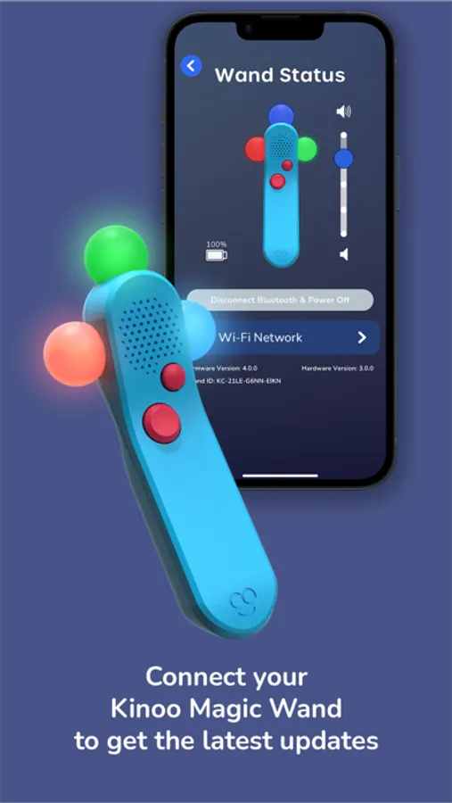 - Connect the Kinoo Magic Wand via Bluetooth, Wi-Fi and manage updates