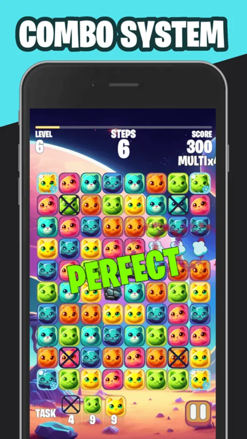 Swap blocks, make combinations, complete tasks to complete the level!
