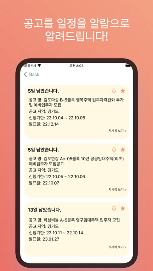 알람기능을 통해 즐겨찾기에 등록된 공고에 대해서 앱에서 알람을 보내드립니다!!