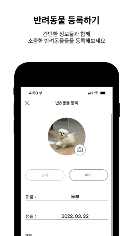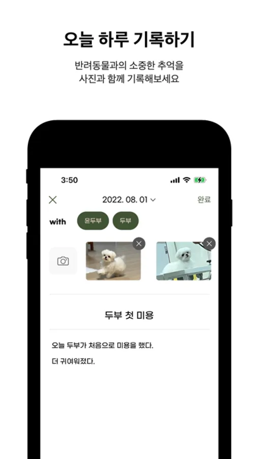 - 반려동물과의 하루를 사진과 함께 보관할 수 있어요.