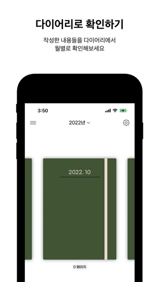 - 연도를 설정하여 과거나 미래의 다이어리에도 기록을 작성하고 확인할 수 있어요.