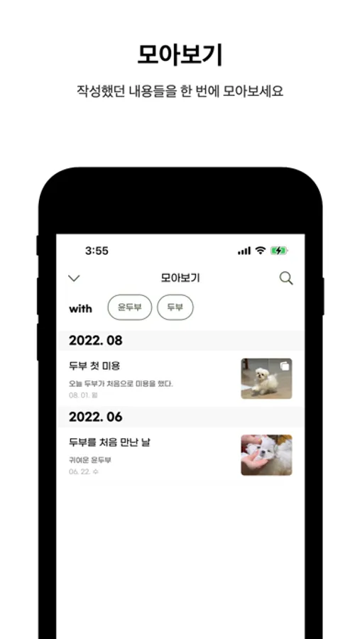 - 작성한 모든 기록들을 한 번에 모아볼 수 있어요.