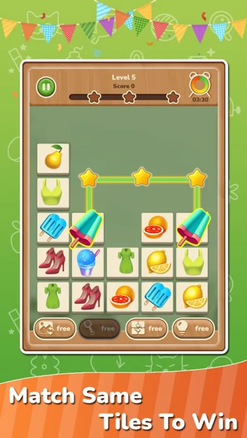 1. To connect and match, you need to find two tiles with the same pattern in a pile of pattern tiles.
