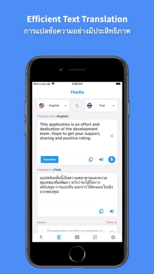 ThaiGo is the leading Thai Translator App with many outstanding features such as accurate voice, text & photo translation from Thai to 45 languages and vice versa.