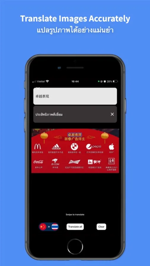 * Camera & Photo Gallery - this translator makes it easy to translate photos into Thai.