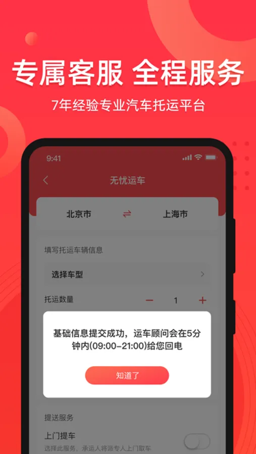 【一对一客服】运车全程一对一客服专业服务,随时了解运车情况。