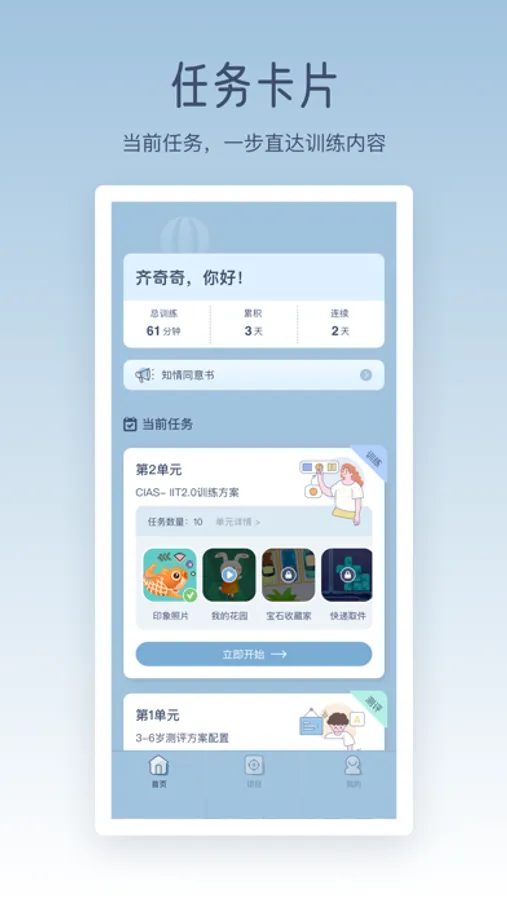 精准测评、专属训练,游戏化的方式参与前沿数字疗法体验,有趣、有效