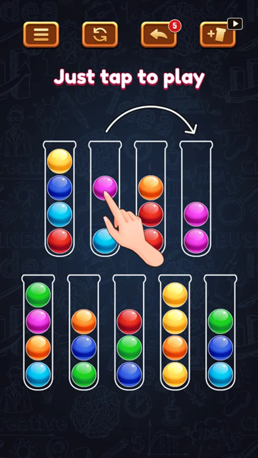 Ball Sort Puzzle - a relaxing color sorting game. Just tap and switch same color balls into each tube. It's a simple, fun, and addictive game.