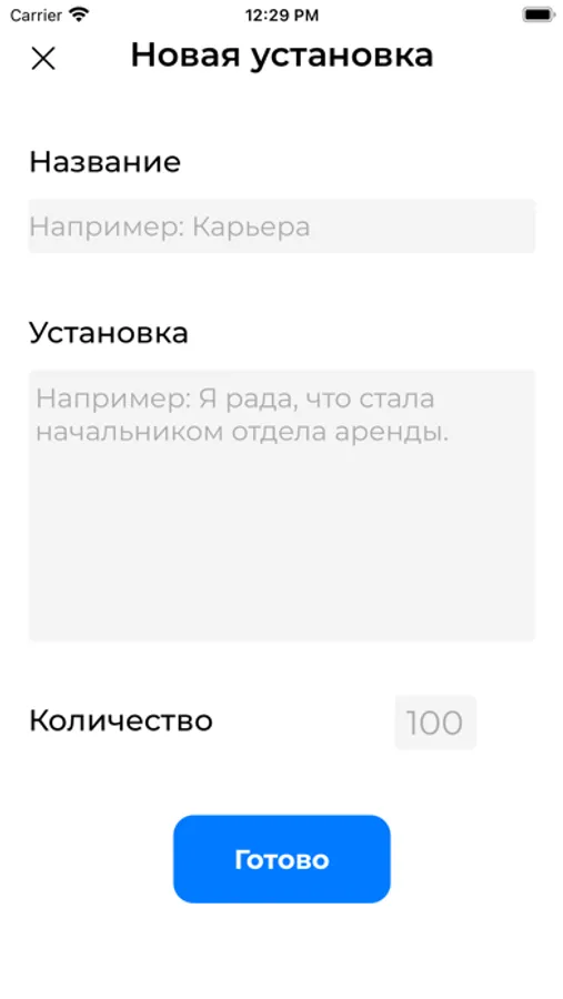 Психологическая установка – это неосознанные мысли, исходящие из его предыдущего опыта и определяющие его действия в различных ситуациях. Многократное повторение нужных установок откладывается в подсознании, таким образом меняя мышление. В данном приложение можно прописать нужную установку и количество повторений.