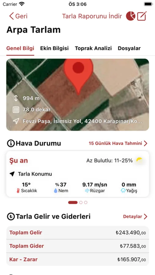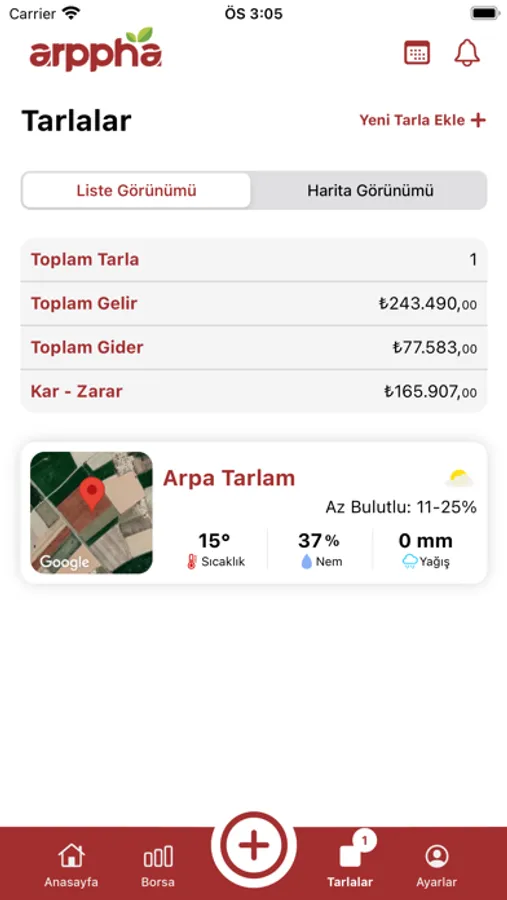 • Tarlanızda hastalık riski oluştuğunda arppha önceden uyaracak, almanız gereken önlemler konusunda sizi yönlendirecek.