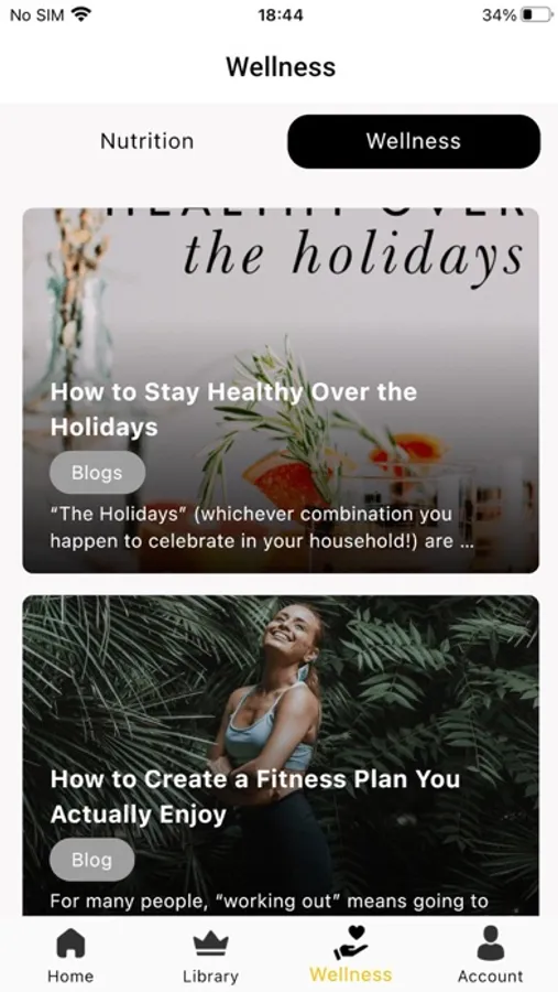 Your wellness page, a space to keep up to date with your trainer's blogs and all extra content.