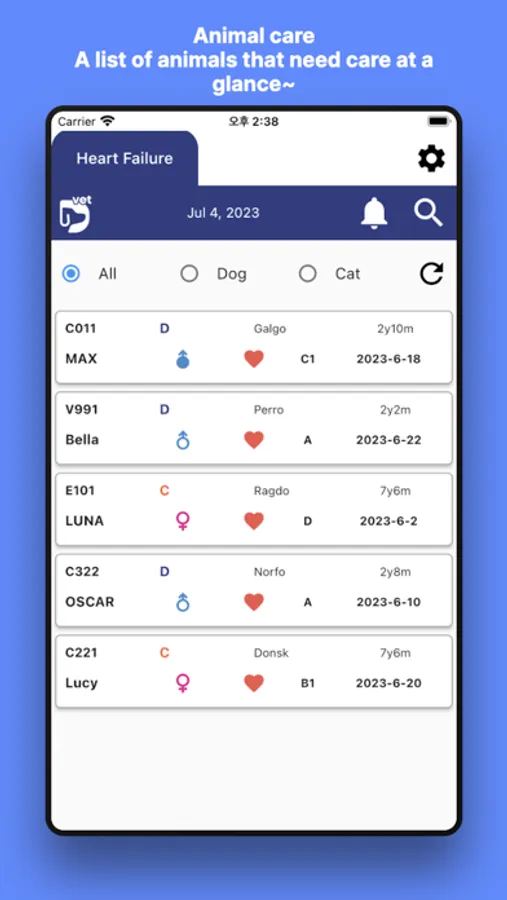 “Dolittle Veterinary Use” matches the heart rate, breathing, and weight information of companion animals measured with Dolittle to the veterinarian.