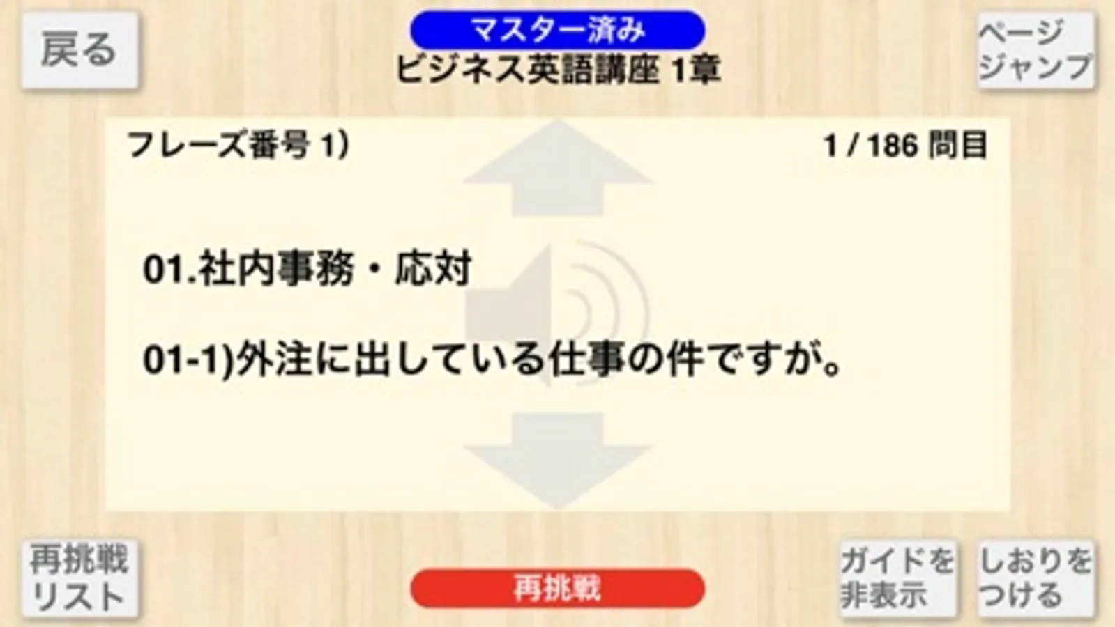 ・日本語から英語の順で再生し、英語が流れる前にで英語を言い当てる訓練をしてください。