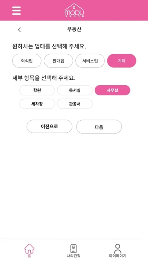 다양한 서비스의 견적을 받아보실 수 있습니다.