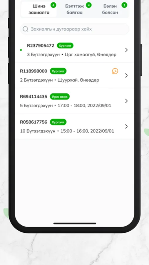 Захиалга хяналт: Захиалга хүлээж авах, бэлэн болгох, шоппер (хүргэлтийн ажилтан)-д хүлээлгэж зэрэг бүх үйл явцаа хянах боломжтой.