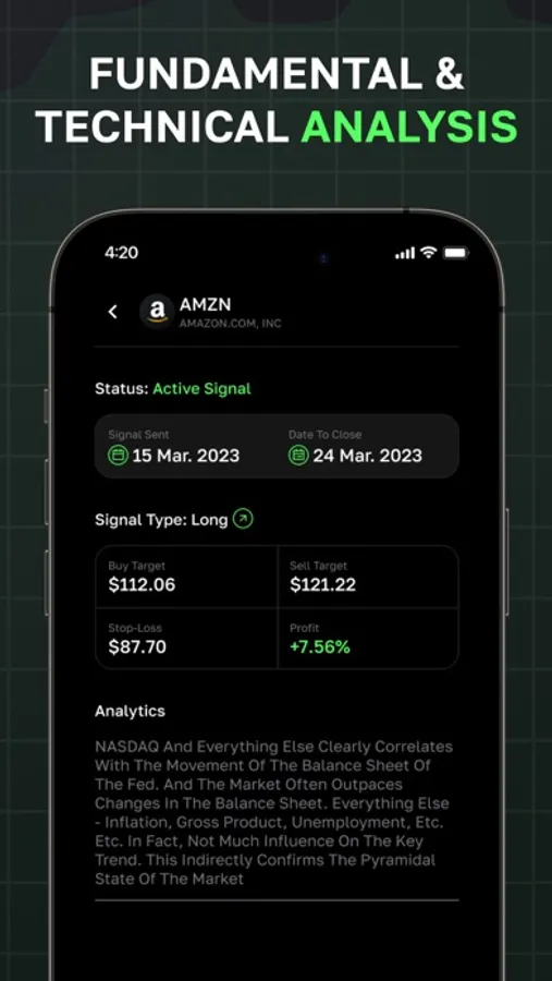 The app uses advanced algorithms and machine learning technology to analyze market data