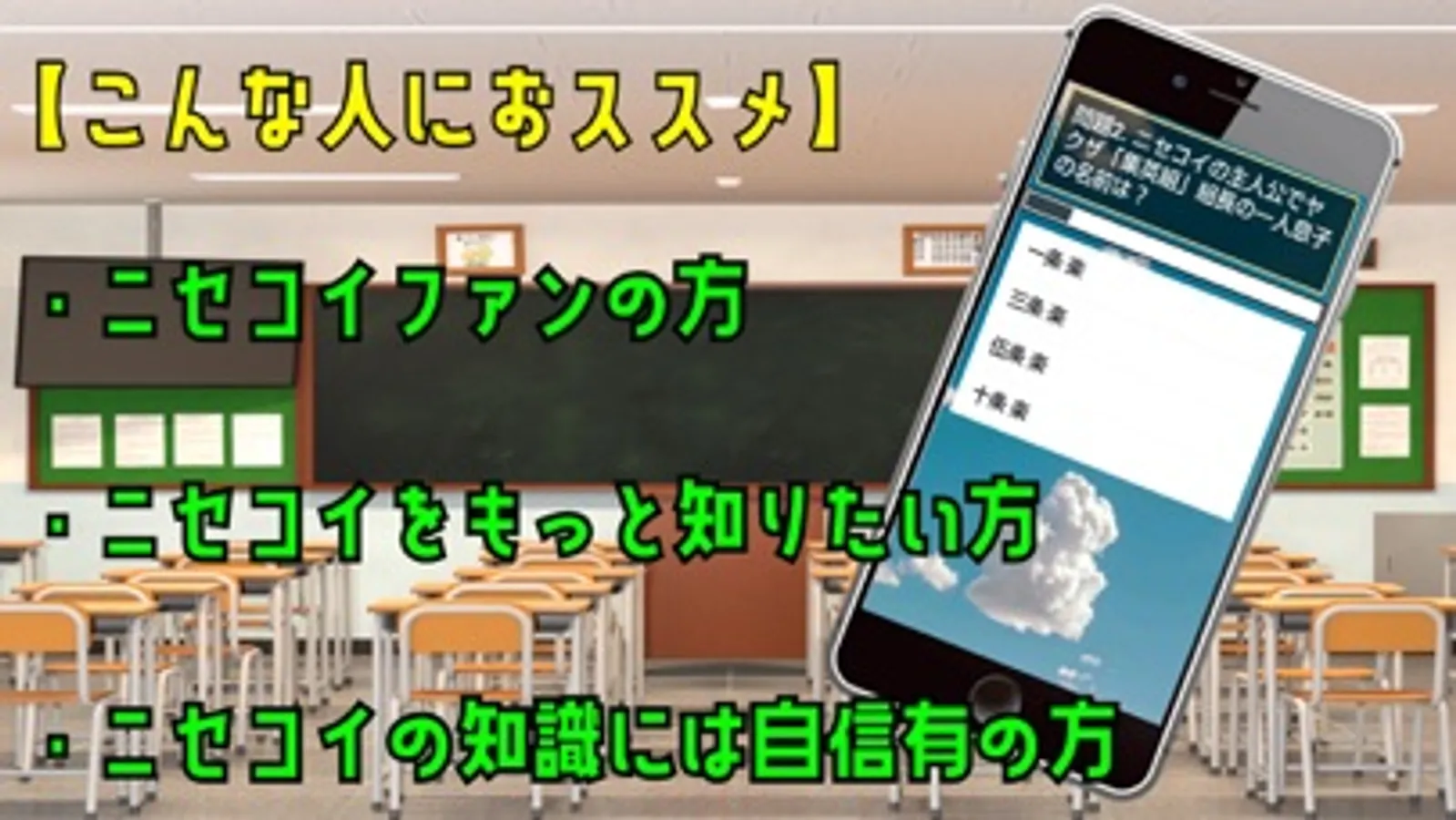 大人気アニメ「ニセコイ」の検定アプリ登場。