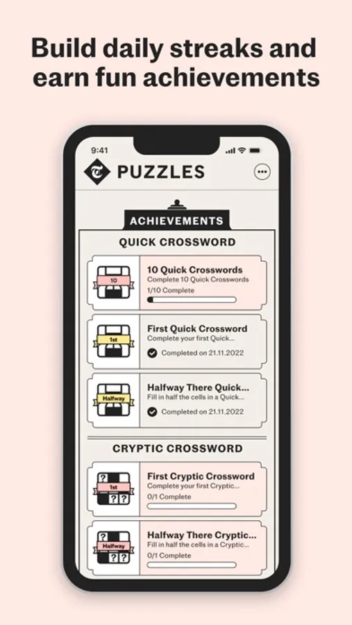 Showcase your puzzling prowess by building daily streaks for finishing your favourite games. You'll also be able to earn fun achievements by reaching milestones and taking on new brain-teasers.