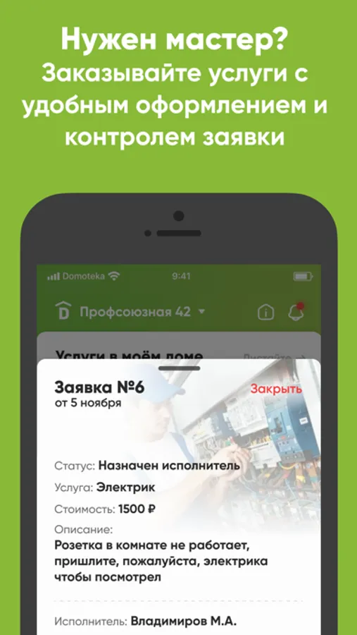 — Получить дополнительные услуги в вашей квартире (вызов электрика, водопроводчика и многое другое)