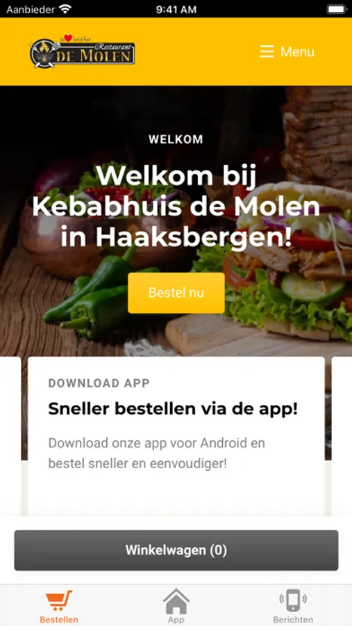 Download onze app en blijf op de hoogte van het laatste nieuws en de nieuwste acties, aanbiedingen en kortingen. Via onze app kunt u onze menukaart bekijken en direct vanaf uw telefoon uw bestelling plaatsen. U kunt via de app ook met iDEAL betalen!