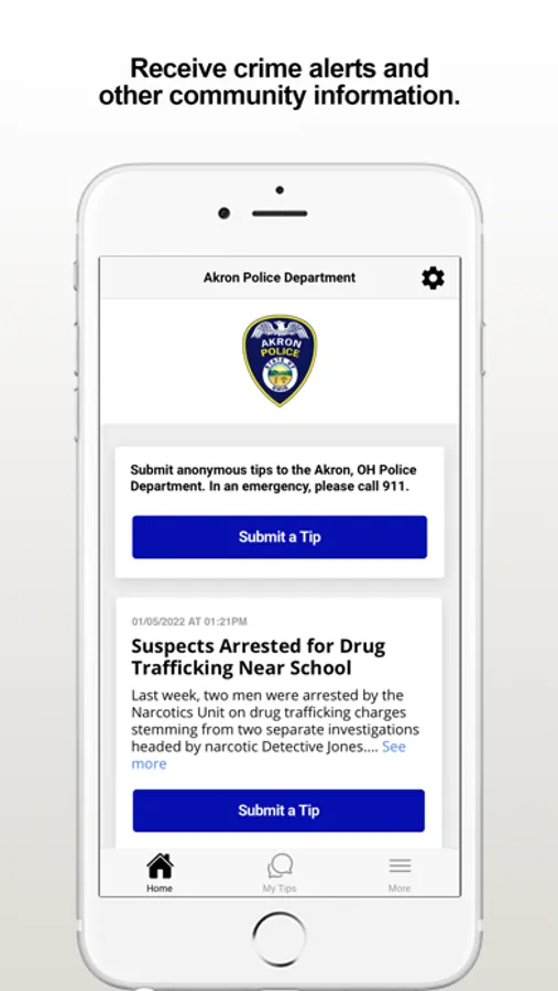 The Akron PD app provides citizens the ability to submit anonymous tips to the Akron, OH Police Department. The app also displays agency crime alerts and other organization web and social media content.