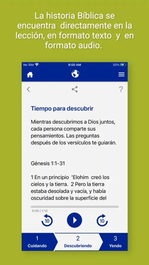 - "Repleto" de lecciones para ayudar a cada persona a crecer donde quiera que ellos puedan estar en su comprensión de Jesús. - Contiene lecciones tanto en audio como en texto.