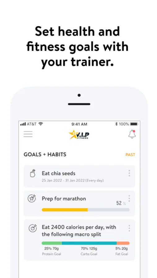 With the VIP Fitness Center App, you will have access to workout programs designed specifically to help you reach your fitness and health goals! You can follow & track your workouts, your nutrition, your lifestyle habits, measurements and results–all with the help of your coach.