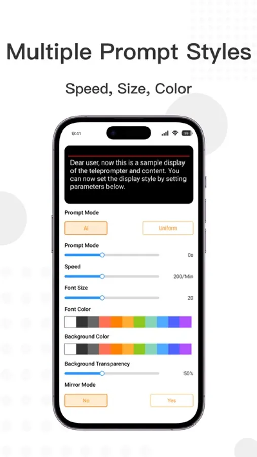 4. Variety of custom styles: Customize the size, transparency, color, and other styles of the prompter;