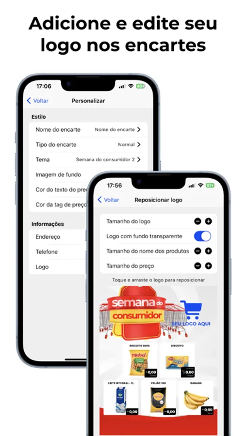Criar encartes de até 30 produtos para divulgar as ofertas do seu supermercado nas redes sociais.