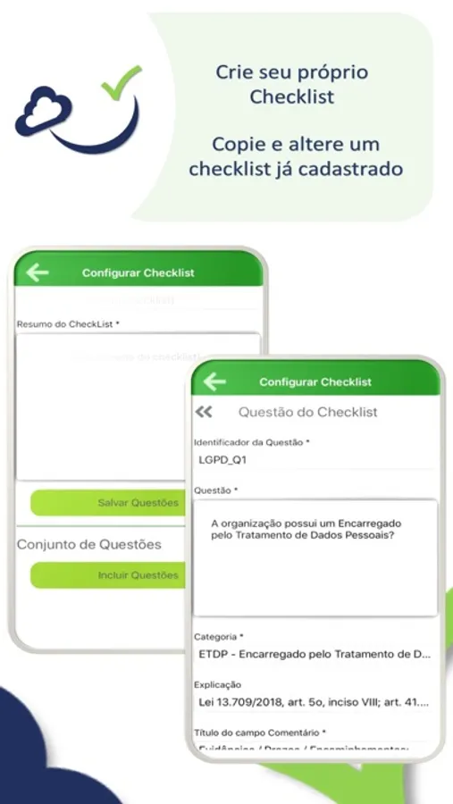 Como exemplo, o AgilCheck já vem com um checklist contendo uma lista de questões para colocar a sua empresa em conformidade com a Lei 13.709/2018 (LGPD: Lei Geral de Proteção de Dados Pessoais).