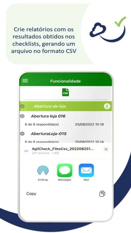 - Gerar planilhas com as respostas obtidas nos checklists (com a geração de arquivo em formato CSV);